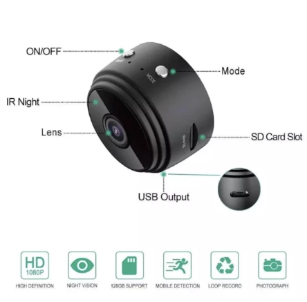 Ultra-small size, the hidden camera can be adsorbed on any iron surfaces with the internal magnet.Perfect as a surveillance camera in Office, Home, and Car, etc. It is easy to carry.